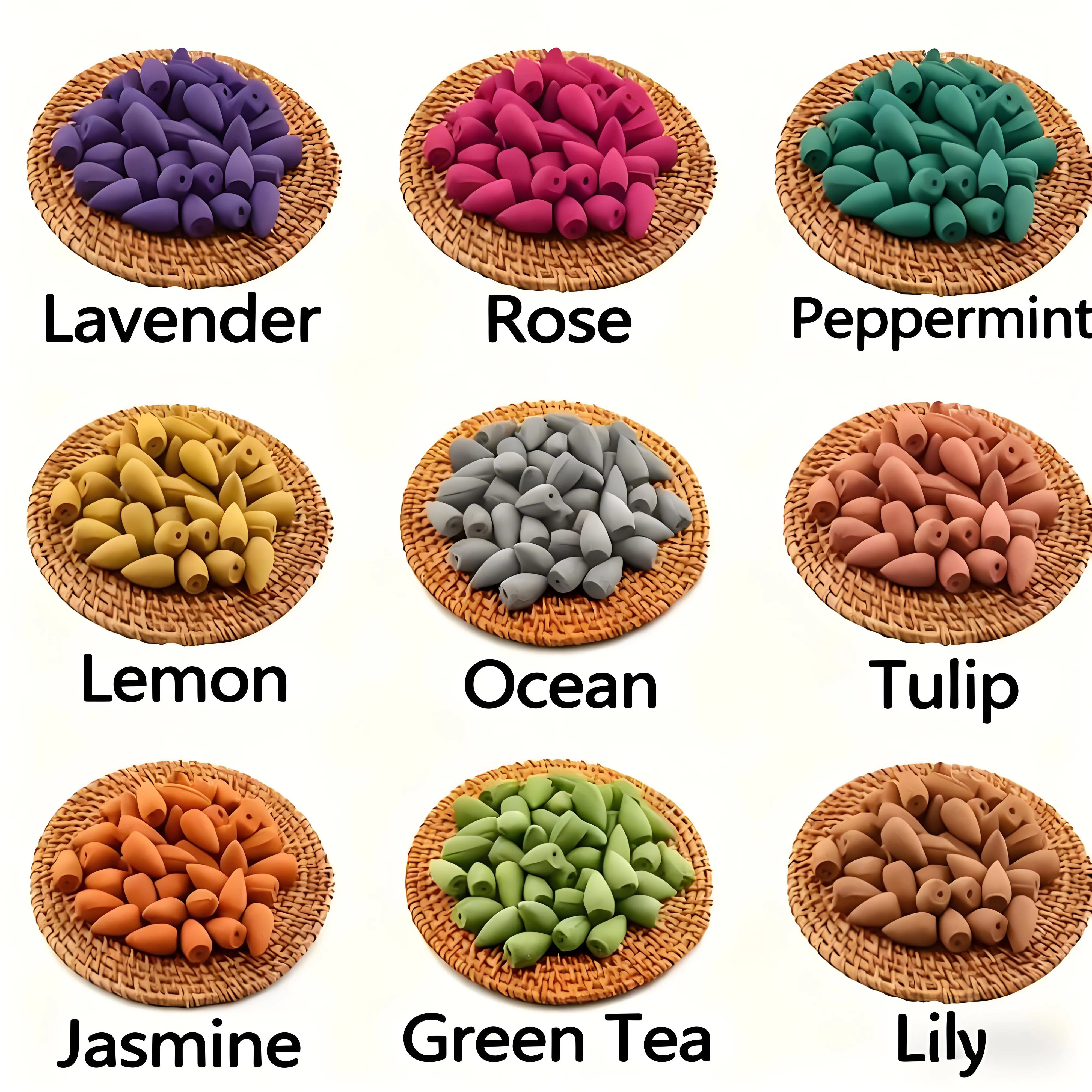 50Pcs Natural Backflow Incense Cones - Various Scents, Lavender, Sandalwood, Jasmine, Rose, Etc. for Indoor Yoga, Outdoor Camping, Perfect for Waterfall Incense Burners, for House Cleaning, Yoga, Tea Room, Home or Office Use