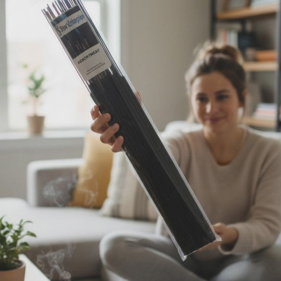 Unleash a daring scent journey with 25 assorted jumbo 19-inch incense sticks.