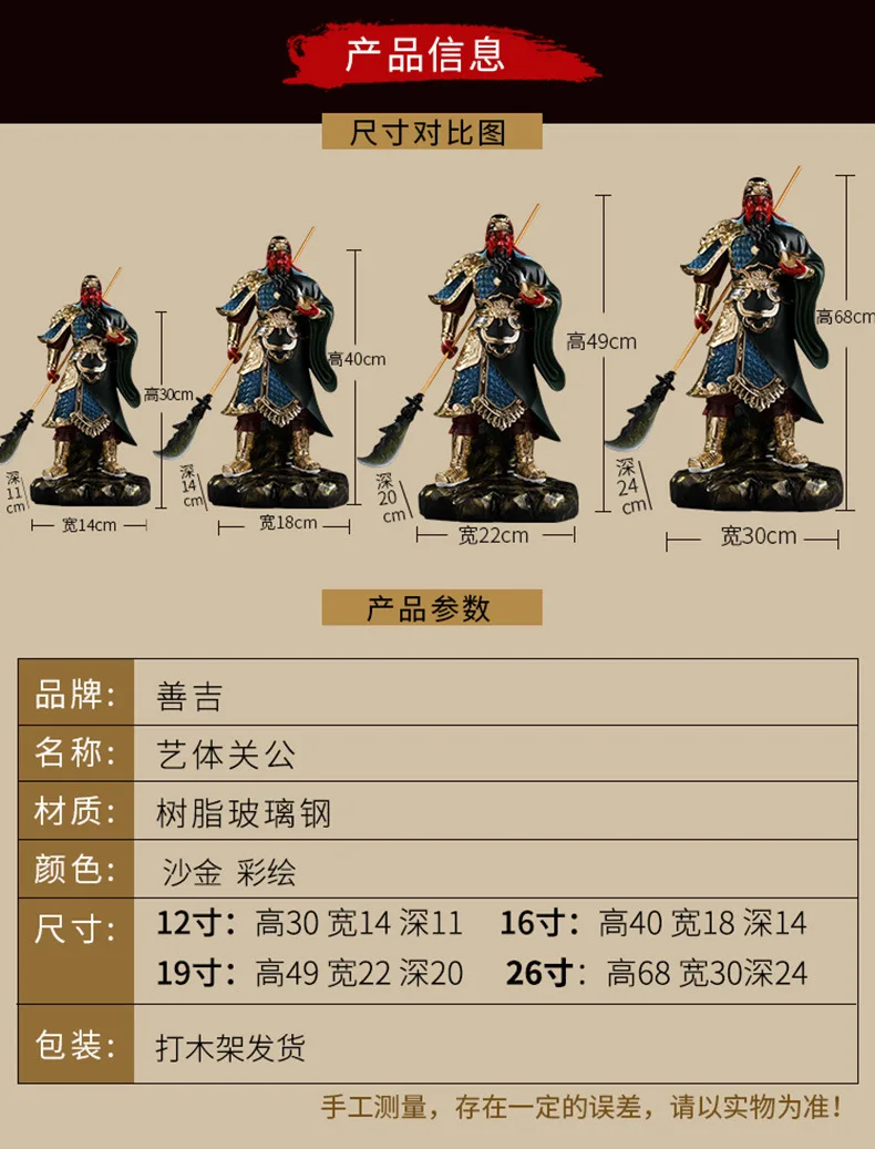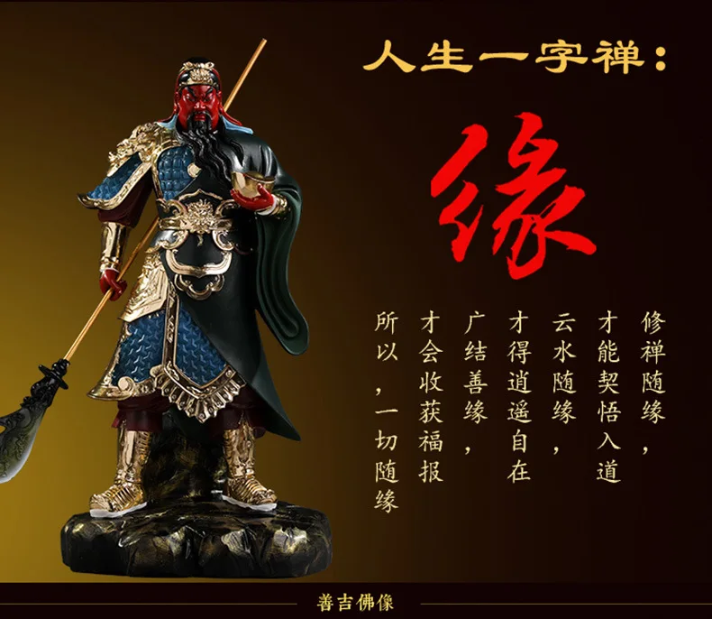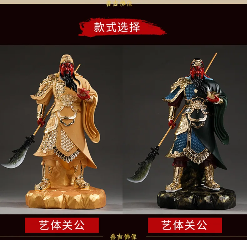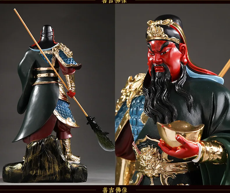 Buddhist Deity Guan Gong Statue - God of Wealth Home Decor Ornament Domineering Buddhism Figurine Guan Yu Worship Idol