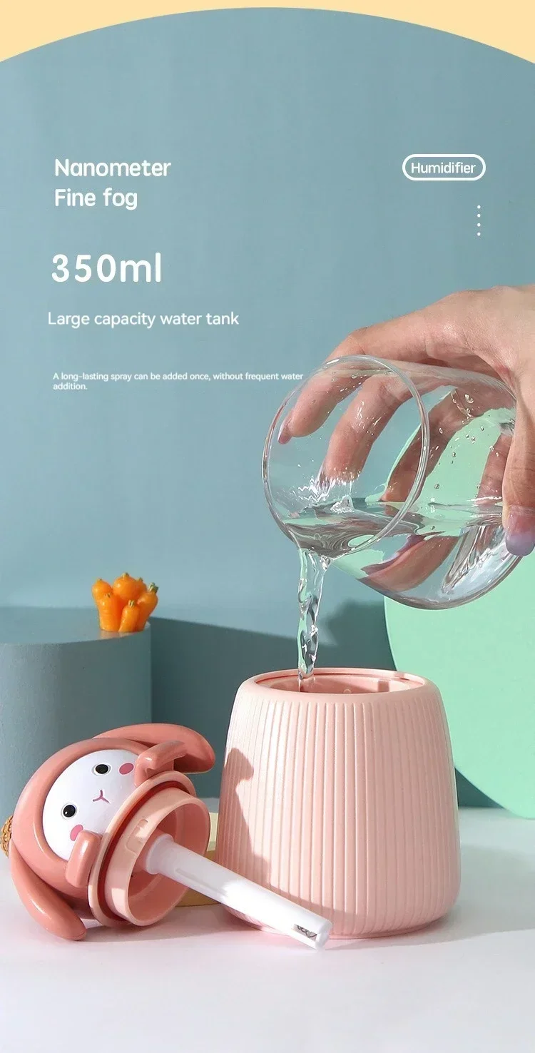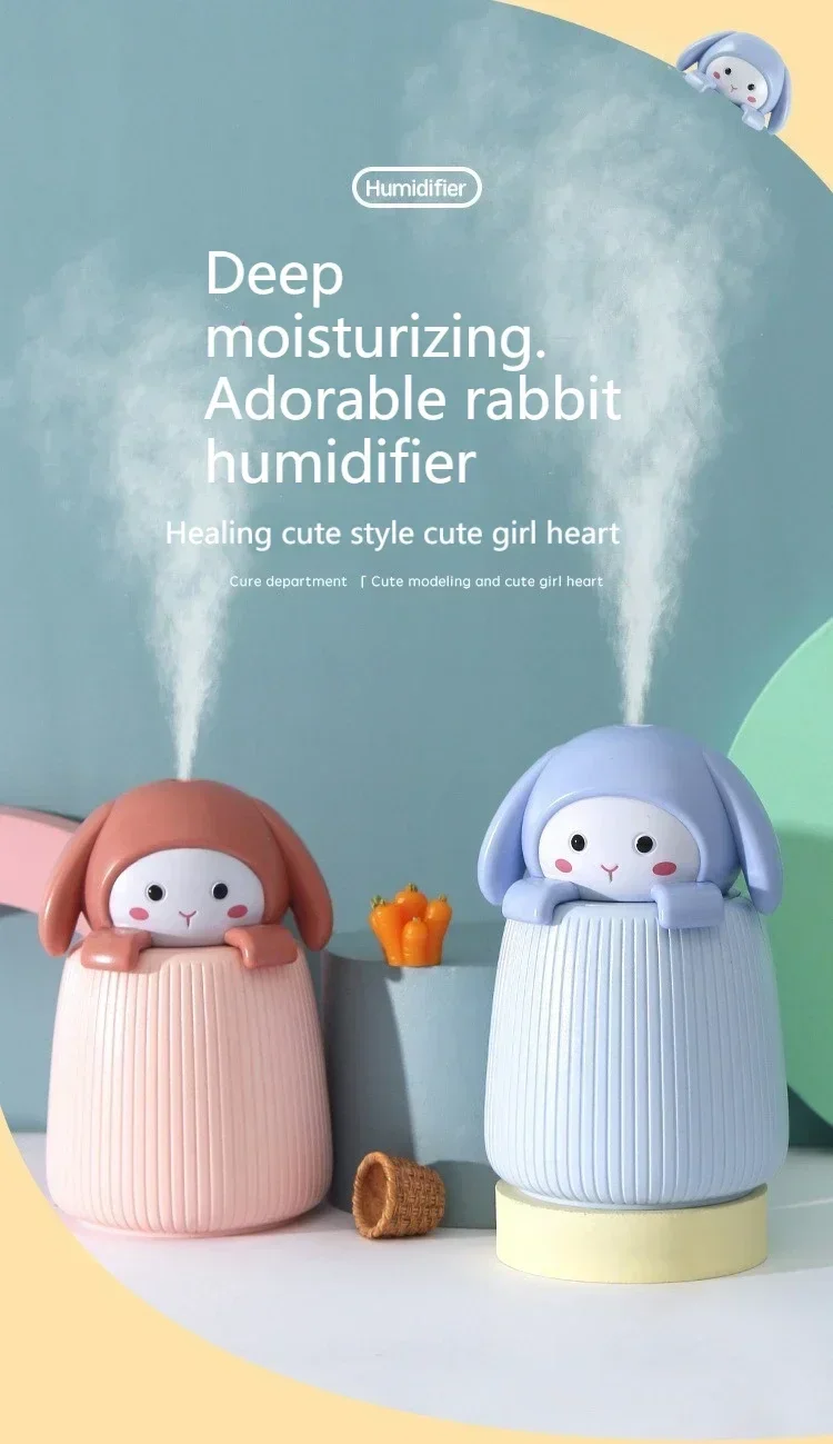 Cartoon Cute Rabbit Desktop Humidifier Two-gear Adjustment Car Bedroom Office Portable Charging Spray Hydration Instrument