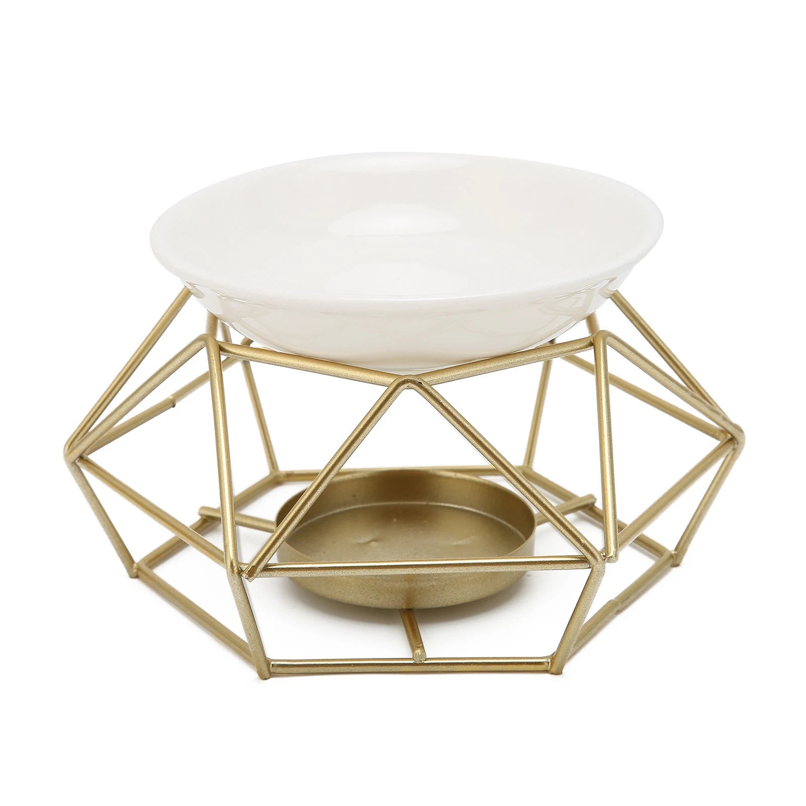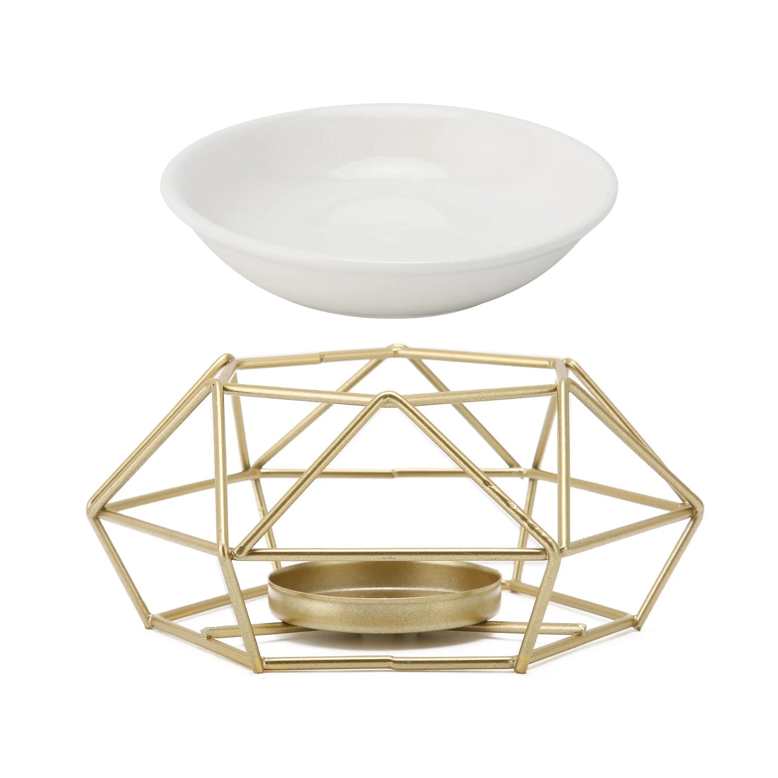 Essential Oil Burner Ceramic Tealight Candle Holder with Hollow-Out Iron Base
