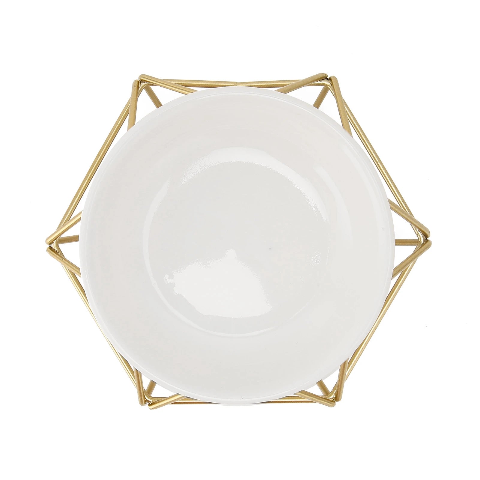 - Elegant, modern design – The golden hollow-out iron frame paired with a white ceramic bowl creates a chic, minimalist look that complements any interior style.