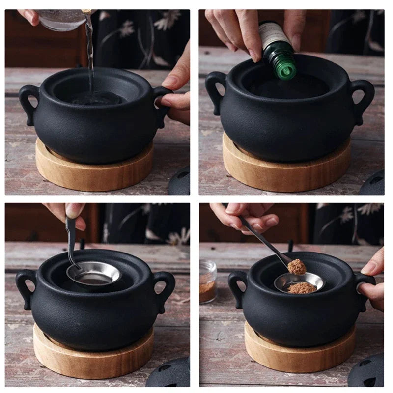 Plug-in Timed Electric Incense Burner – Elegant Black Ceramic Essential Oil Lamp (110V/220V)